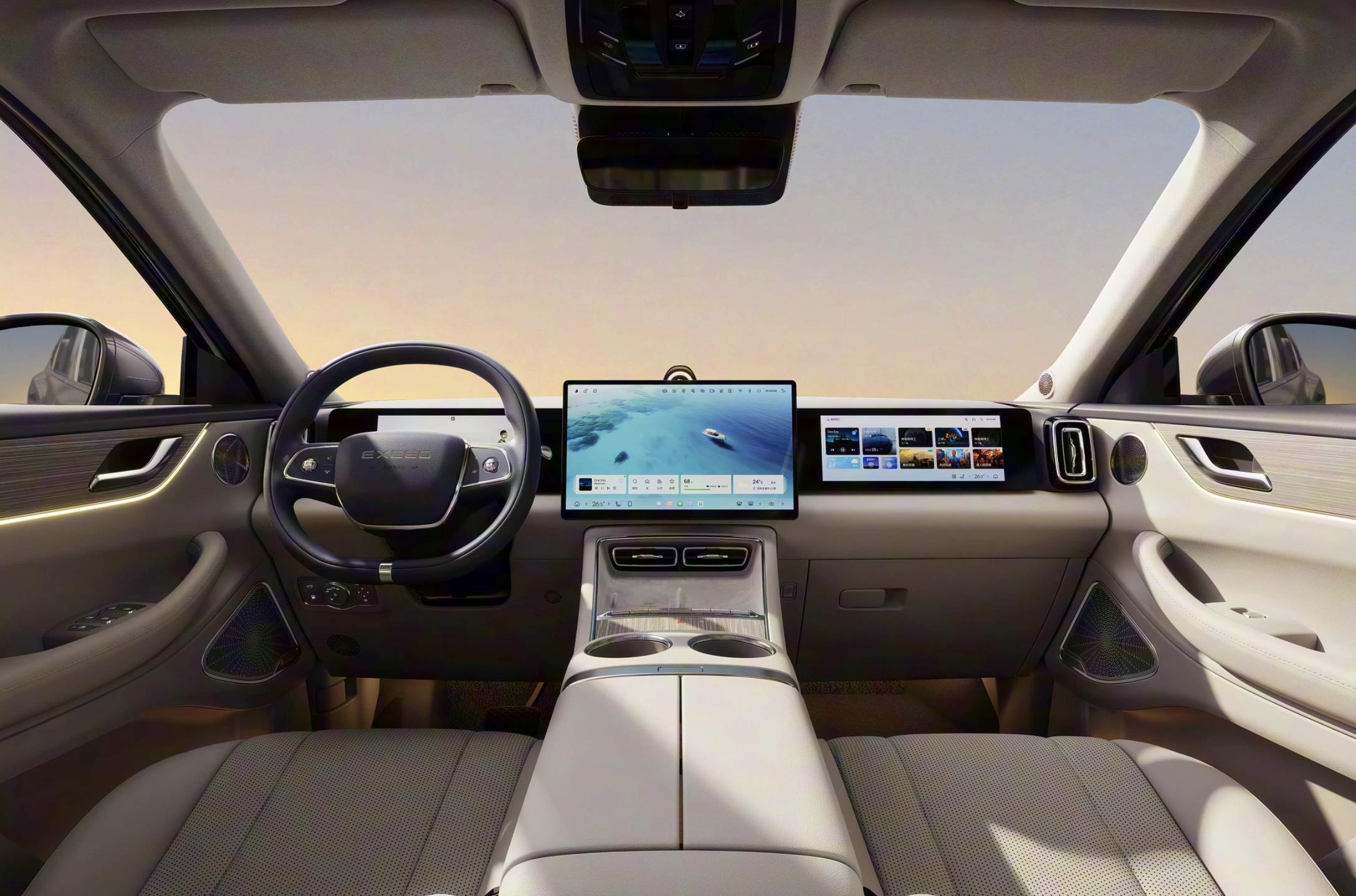 内饰从做工、用料和细节方面都有很大提升。大面积皮革材质通过精致的手工缝线拼接,让我们领略到了德系车严谨的工匠精神。再加上大面积仿碳纤维装饰面板和红色装饰条点缀,更加凸显出它的运动氛围。前排配备了桶装赛车座椅,后排则配备了沙发座椅,同时座椅材质由真皮+仿皮改为仿皮,包裹性更好,舒适感也大有提升。科技感方面,15.6英寸中控屏+12.3英寸副驾屏+10.25英寸仪表屏,支持三屏互联,8295P车机芯片、AppleCarPlay、50W无线充电。配备猎鹰700辅助驾驶系统,全车16颗感知硬件,算力达560TPS,智驾水平属国产第一梯队。