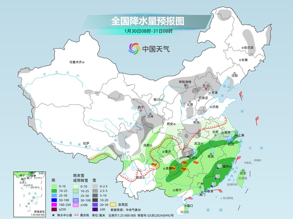 后天,降水范围将明显收缩,北方降水基本停歇,南方降水还将持续。预计黑龙江中部、西藏北部和东南部、甘肃西部、四川西北部、湖北南部、湖南北部、安徽南部、江苏南部、浙江北部等地部分地区有小到中雪或雨夹雪。重庆、贵州西部、湖南中南部、江西、浙江南部、福建、台湾岛等地部分地区有小到中雨。